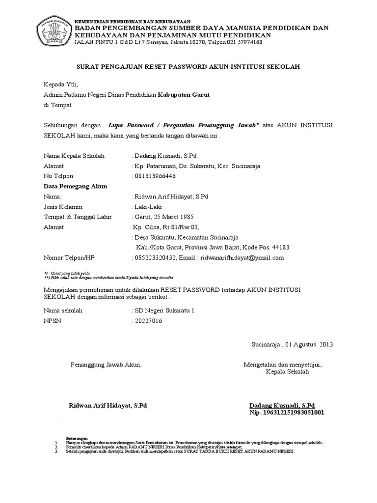 Formulir Pengajuan Reset Akun Sekolah